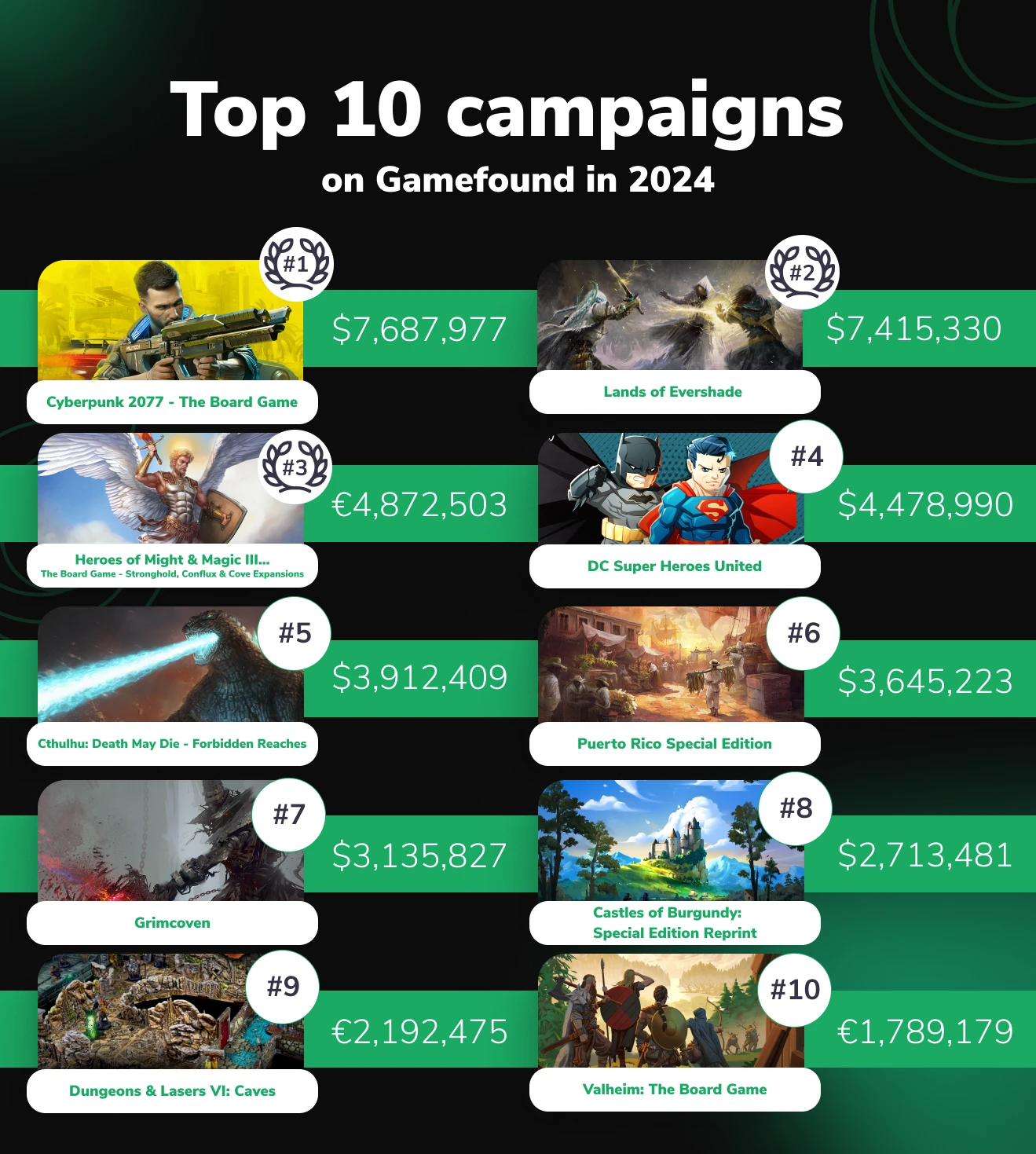 Creators often see significant gains on Gamefound when reprinting titles originally launched on Kickstarter. With powerful conversion tools and an engaged community, your next run can outperform your first.